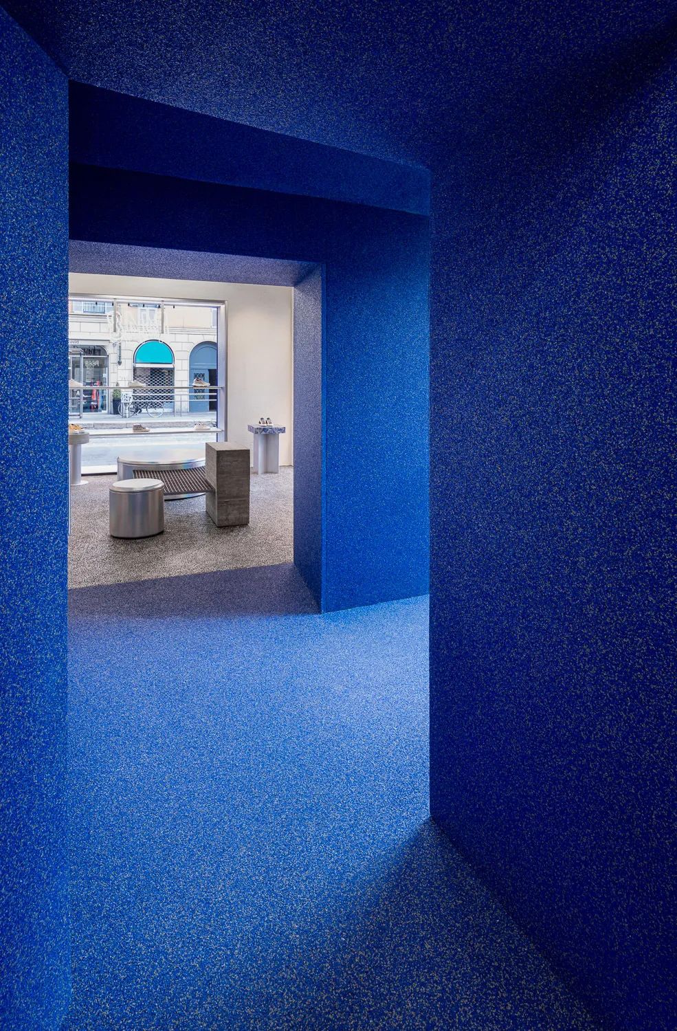 WIPESTAIN艺术涂料克莱因蓝系列这一抹热烈、纯粹又极具视觉侵蚀力的蓝流淌在整个空间,与空间相互融合,构筑出一个经典浪漫又兼具神秘感的空间背景。