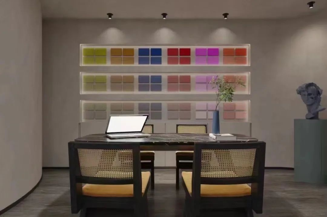 The WIPESTAIN art paint Klein Blue series, this warm, pure and highly visually erosive blue, flows throughout the space and integrates with the space to create a classic romantic and mysterious space background.