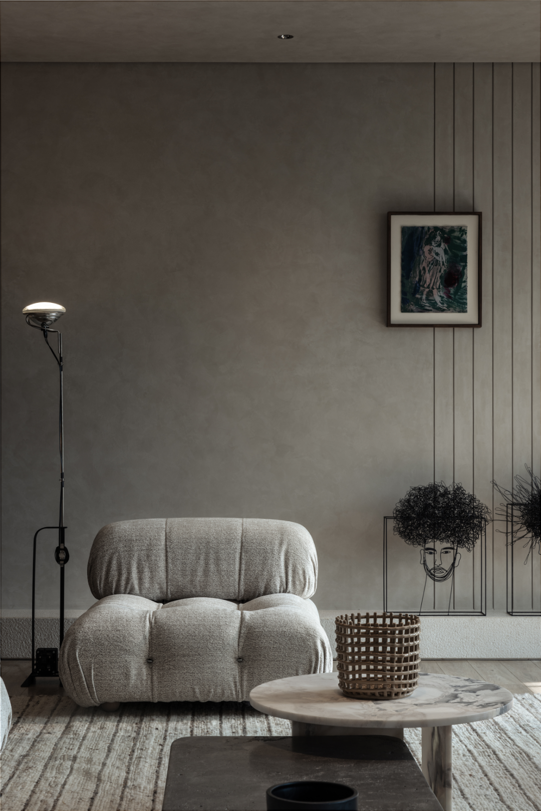 空间中的肌理,都被倾注了WIPESTAIN艺术涂料设计师的灵动语言,玛特 / 菲乐产品系列的哑光感,非凡的触感柔软度让我们称之为黑洞光,让空间中物物之间相互形成和谐的有趣对话。