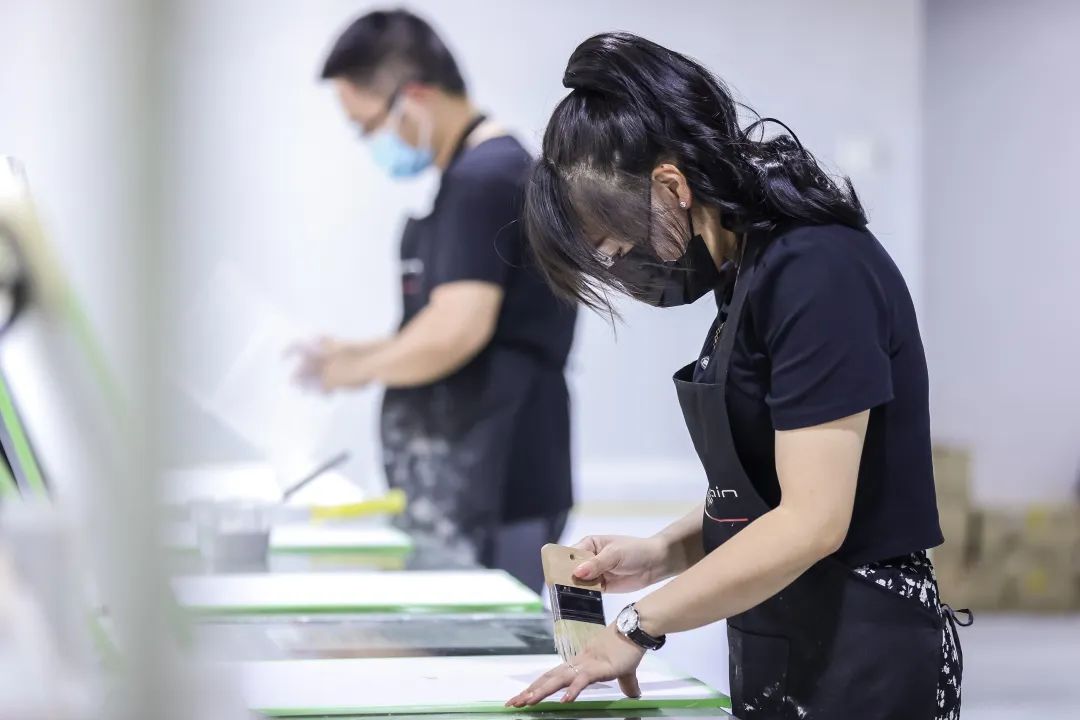 此次WIPESTAIN展厅也同步升级了品牌施工人员培训基地,品牌的丰富材质系列,出色的产品质感,只有搭配出严苛的工艺,才能交出完美的答卷。
