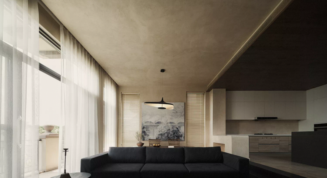 WIPESTAIN艺术涂料打造全屋墙顶一体,设计出开阔场景,以简约美学勾勒写意,携艺术调性盎然生趣,构筑感官舒适,诱发生活品味与睿智空间顷刻交心。