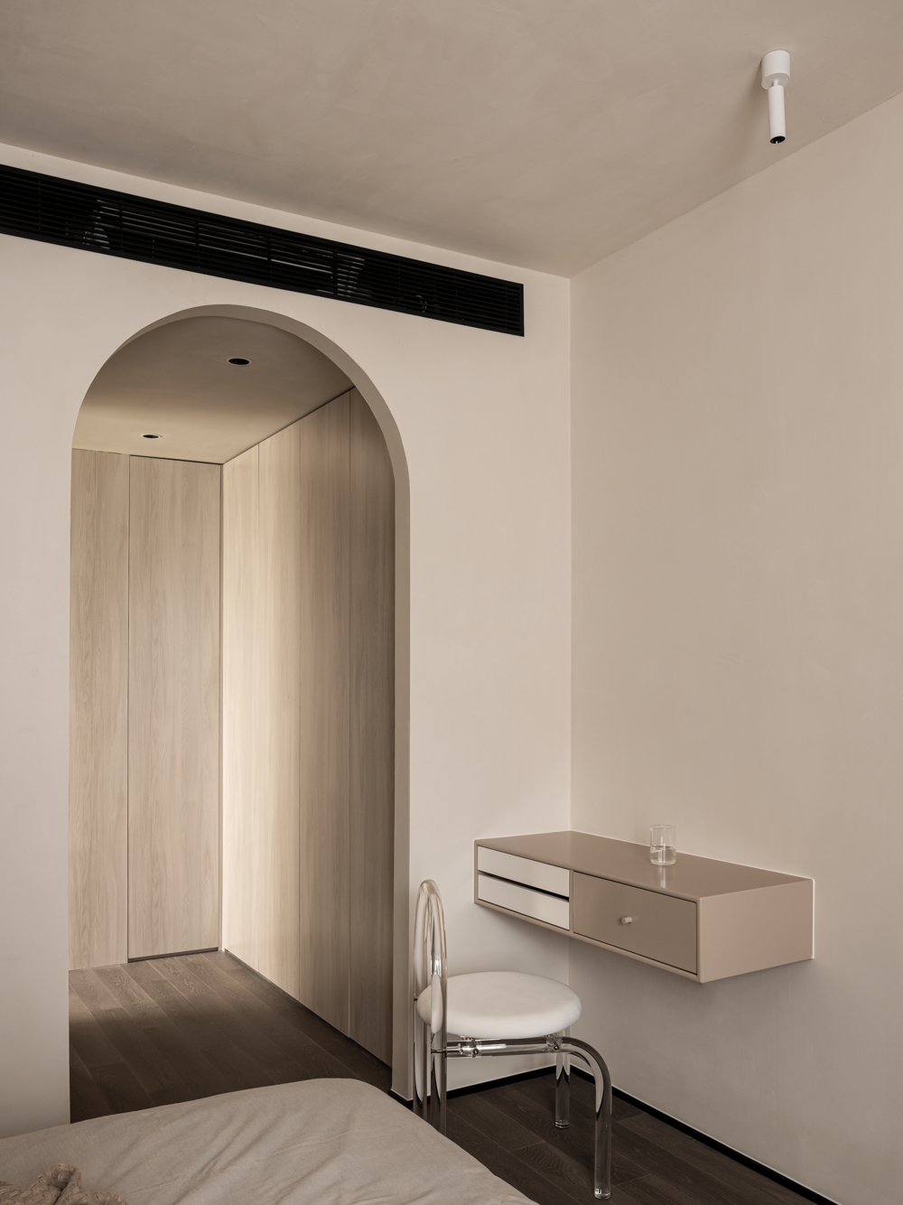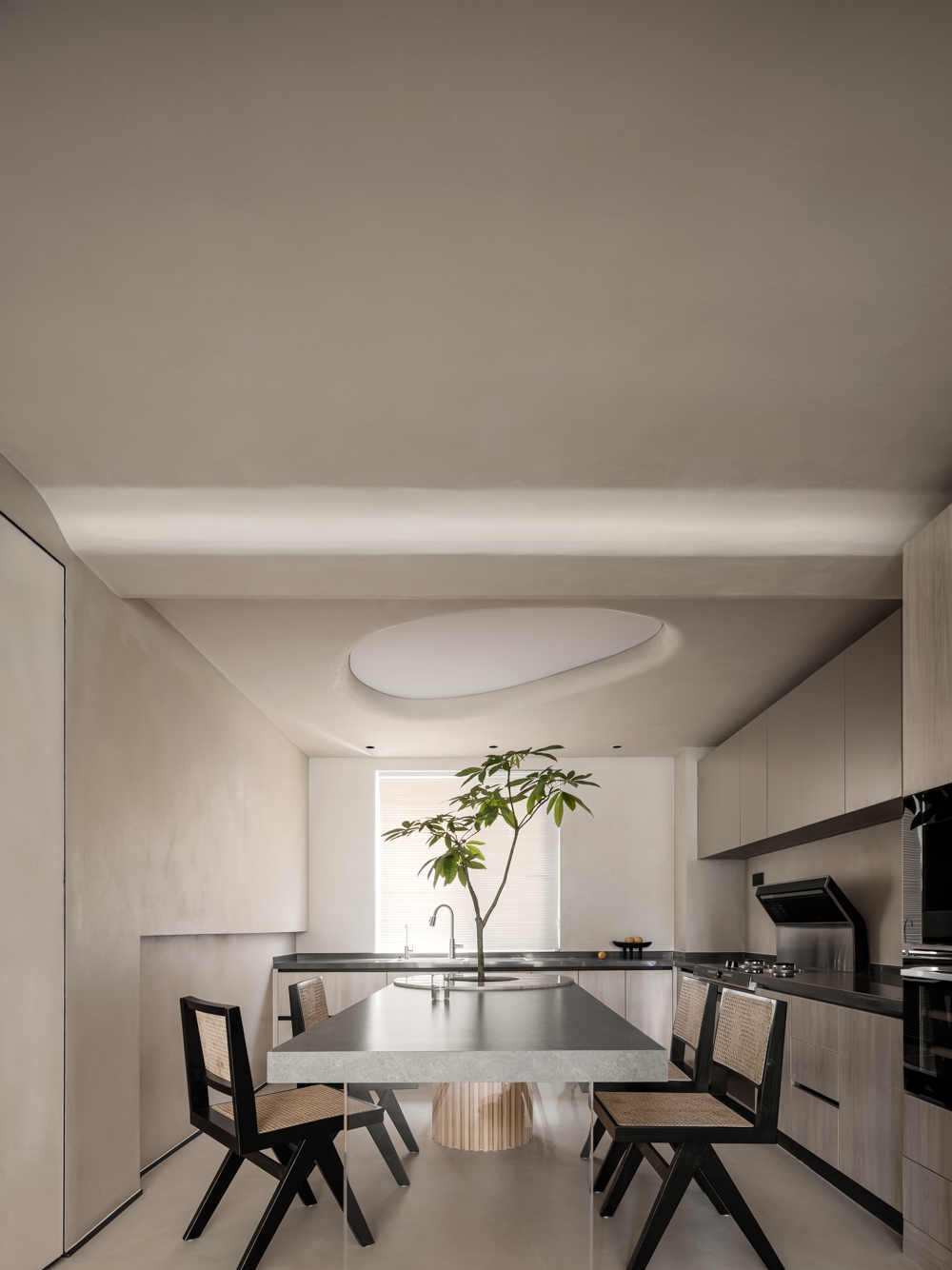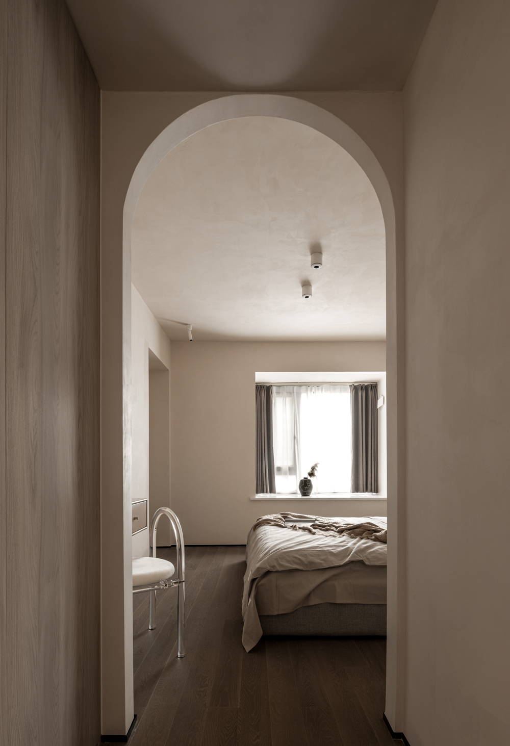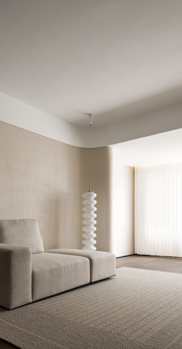 采用WIPESTAIN艺术涂料打造了一个干净利落,沉稳安静的氛围。在灰色系的基础上调和了部分暖色,呈现出更为细腻和柔软的肌理与感官。