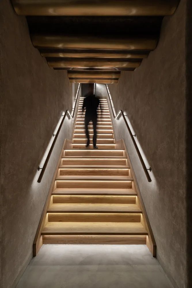 WIPESTAIN art paint starts the landscaping from the wall, and builds a road of "getting better". Step by step, the shimmering light pours in, and the light and shadow provide a dynamic scene for the dark and quiet textured space.
