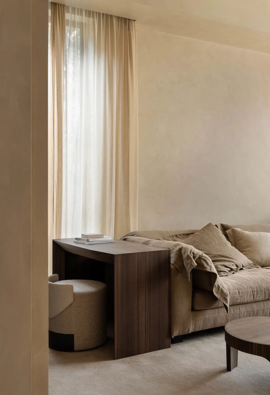 光影构成的视觉变量,依衬在WIPESTAIN艺术涂料材质之上,流泻于细缝之间,如泛舟,轻停泊。序章的演绎,克制而有序。在一隅包覆成弧形,勾勒出空间轮廓。细微处的点缀,趋从主体审美,开启一场四季轮转的探境漫游。