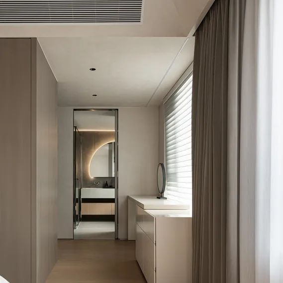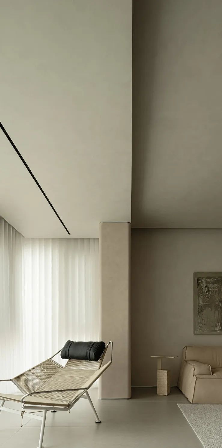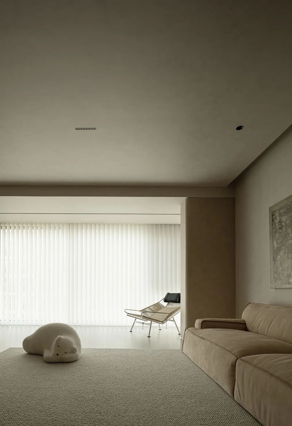 当住宅变得极简,将空间元素统一、简化,并衍生出一股宁静的诗意。看起来简单,实则给人以无限的想象和富有生活气息的空间。没有复杂的颜色,依旧能以利落的线条描绘空间层次,描绘主人的居住态度,希望能从中感受到黑白灰的神秘、坚毅、独立与优雅。