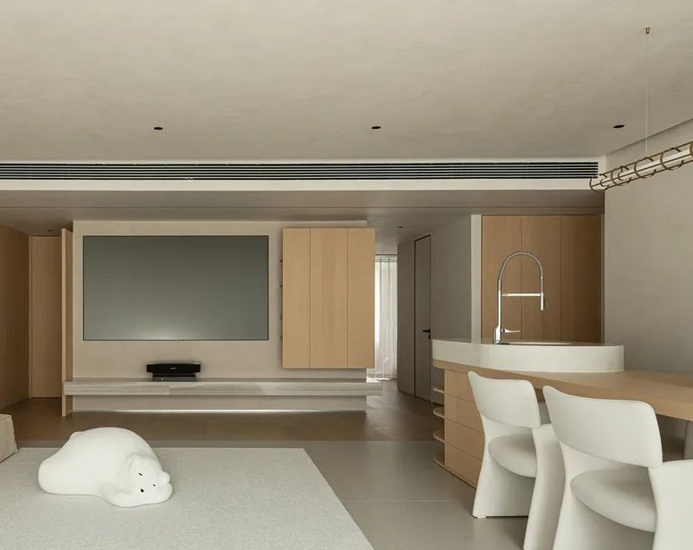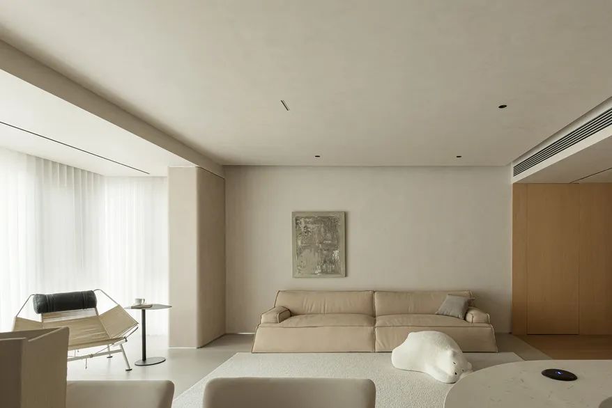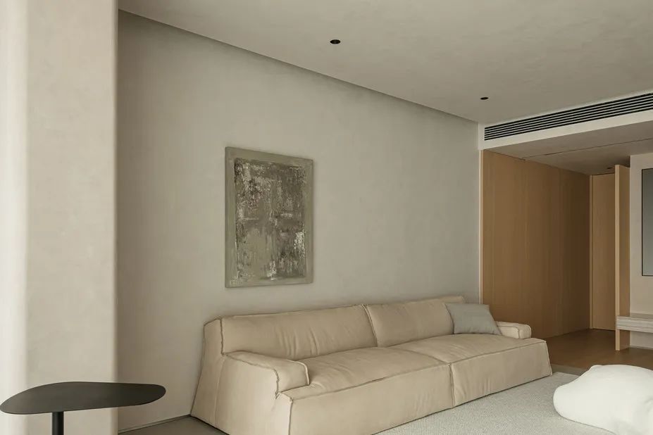 WIPESTAIN艺术涂料墙顶统一的色彩,将空间形成强烈的包裹感,简单的生活或许不会如鲜衣怒马般热闹,却可以精致的如电影情节一般,从容不迫的空间形态往往是状态下最好的治愈。