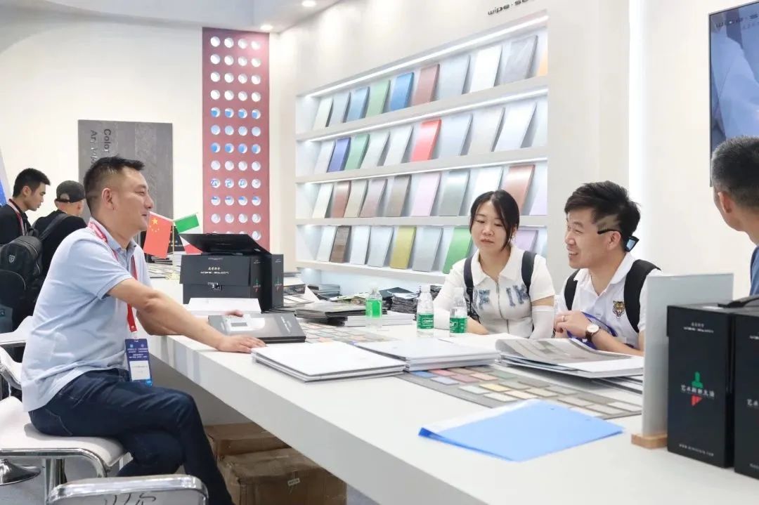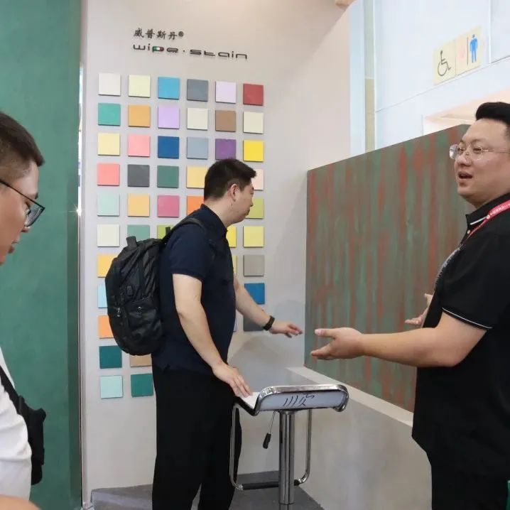 开展首日,WIPESTAIN威普斯丹意大利原装进口艺术涂料展位(广交会展馆B区9.3馆17号)吸引了众多参展者的驻足,现场人流如织。