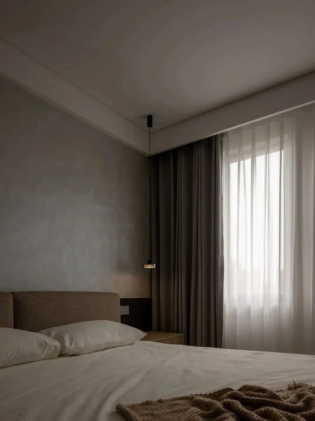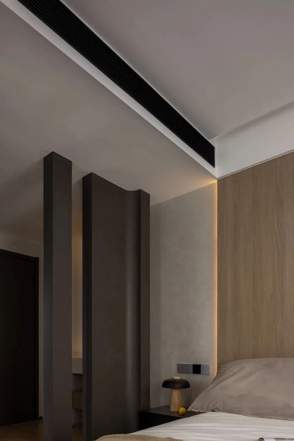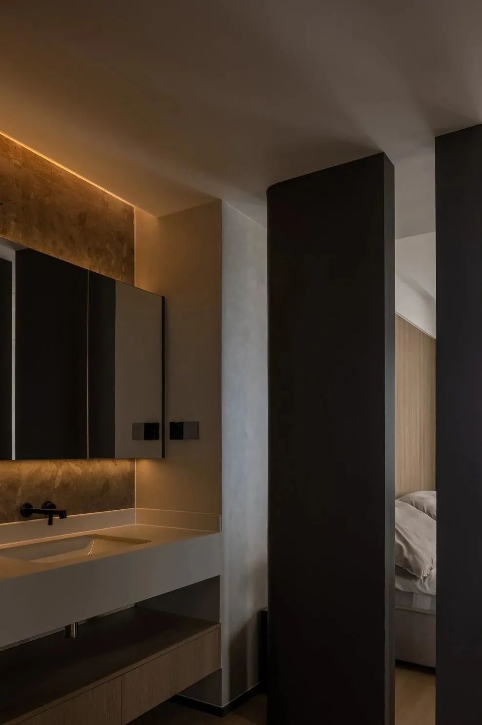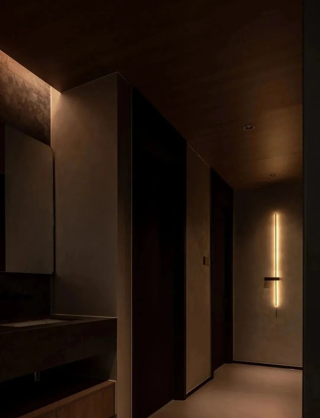 空间经过WIPESTAIN艺术涂料墙面材质呈现出不一样的广阔,独特质感的艺术漆模糊了墙顶边界,冷静包容的空间气质让思绪得以在这里自由驰骋。
