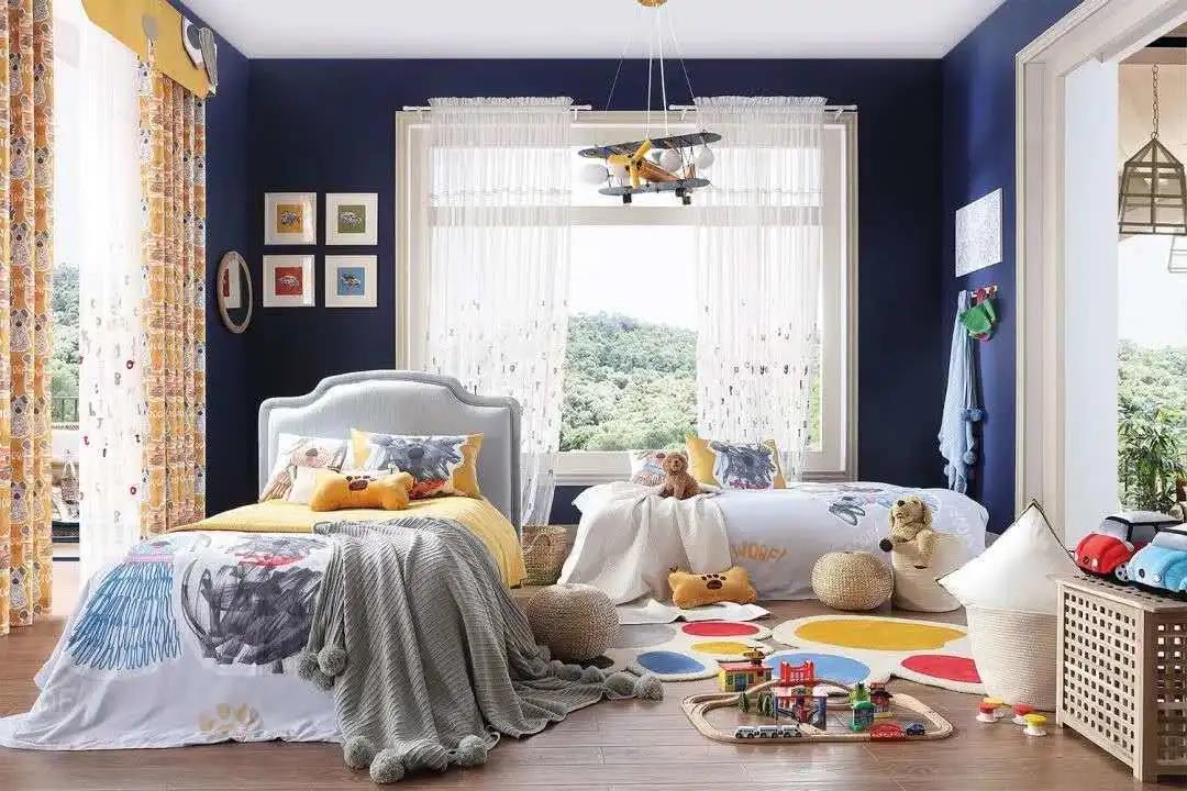 幼儿时期:这个阶段孩子的房间,可以将颜色的纯度稍稍提高,柔和的色彩可以让孩子感受到爱与安全感。