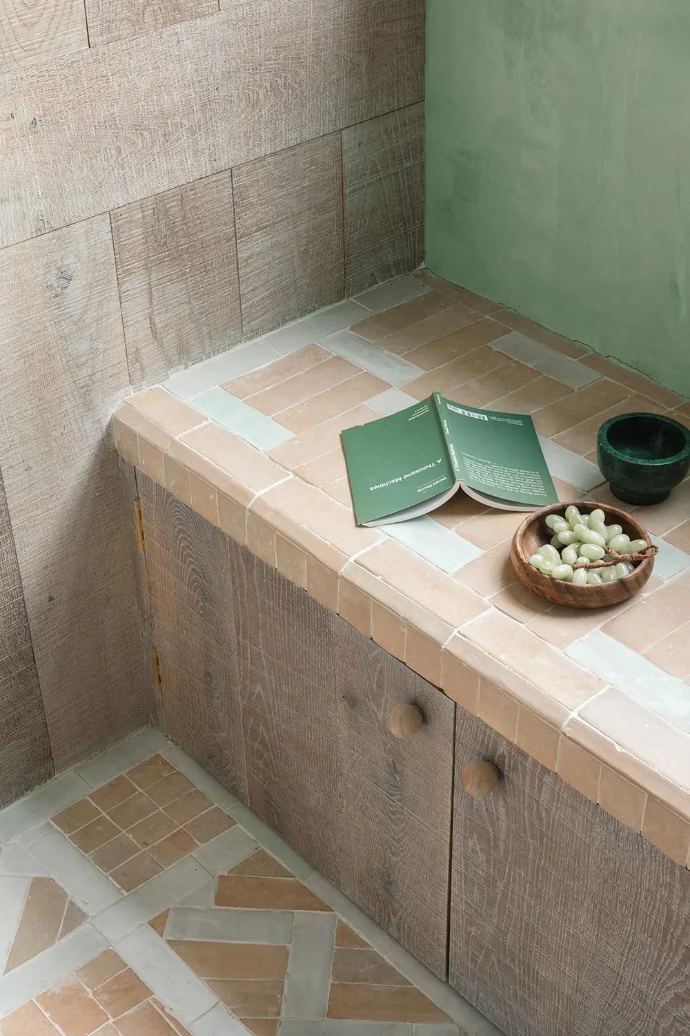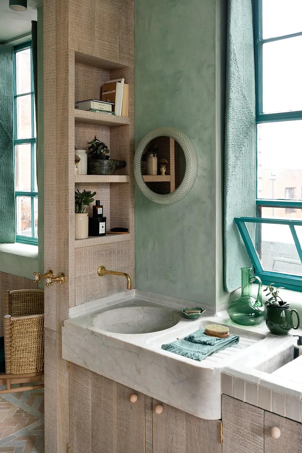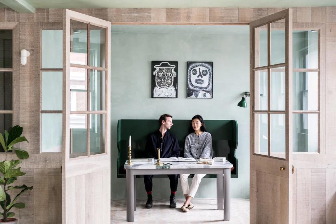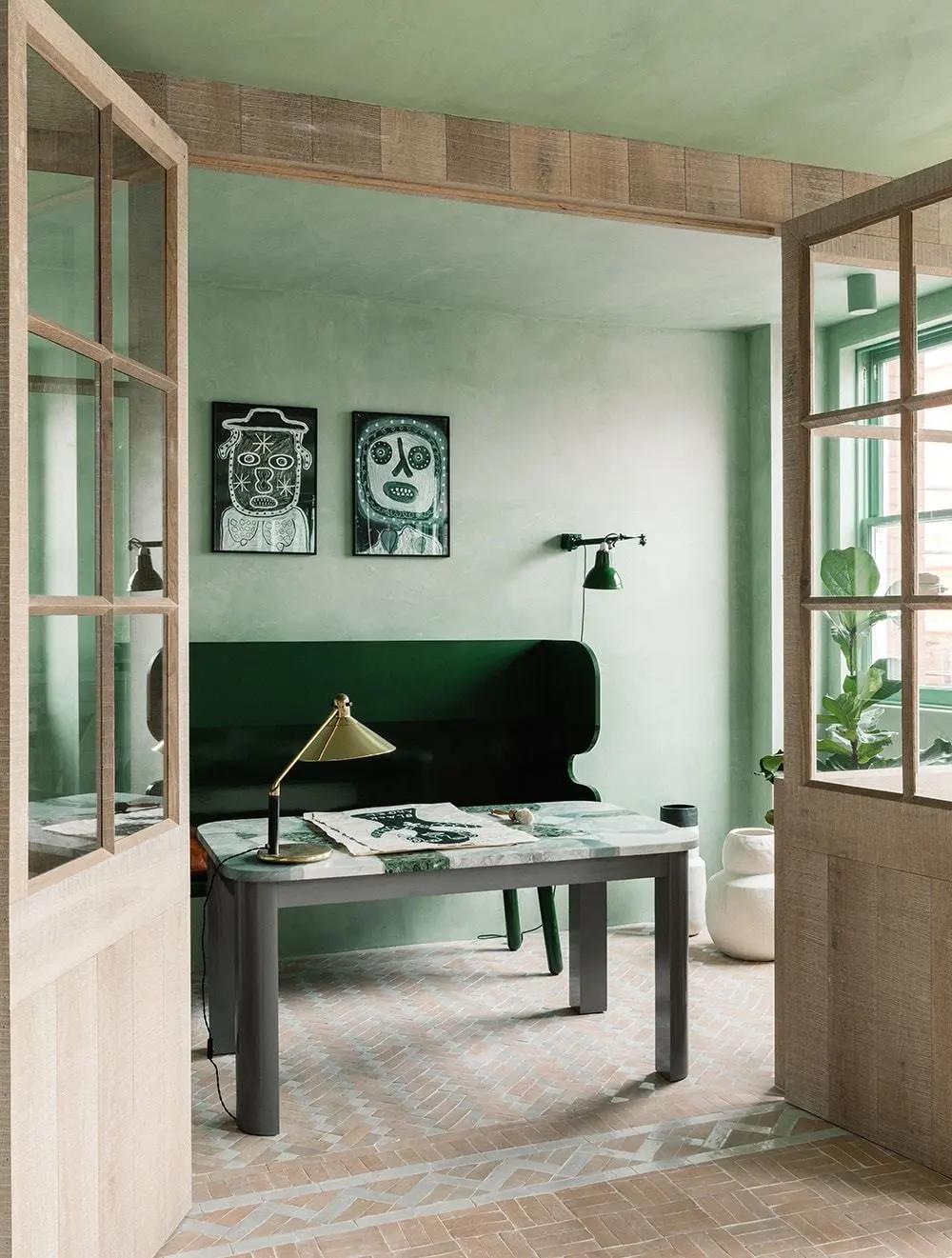 The Barcelona couple defined their home as an open oasis. With the combination of verdant tones and natural textures, the lime plaster walls, linen shutters, lime oak wood brushing and other details complement each other. WIPESTAIN original imported art paints bring this home A unique romance.