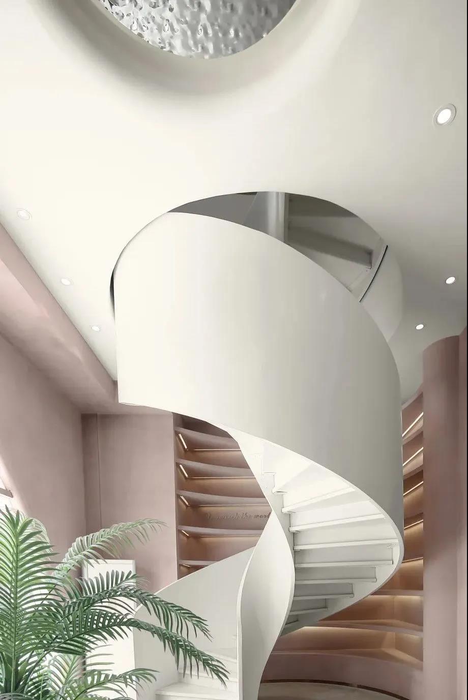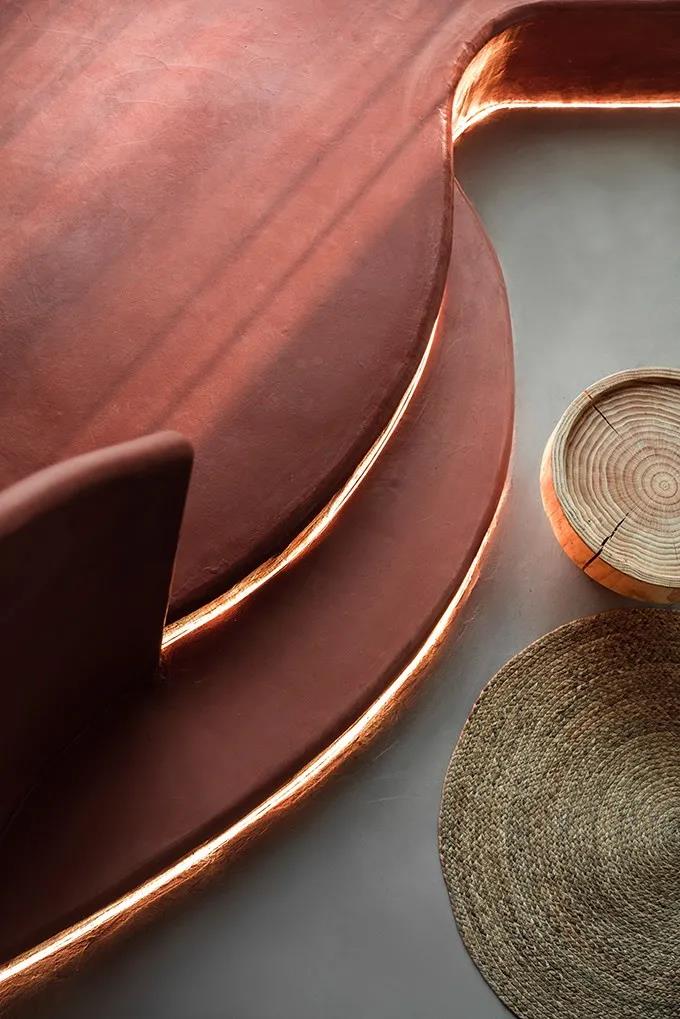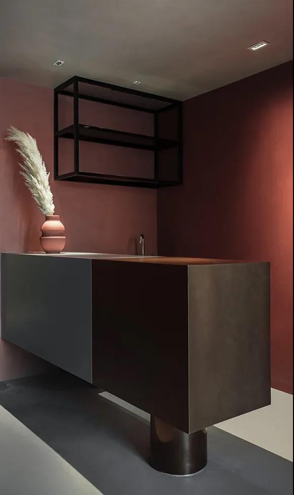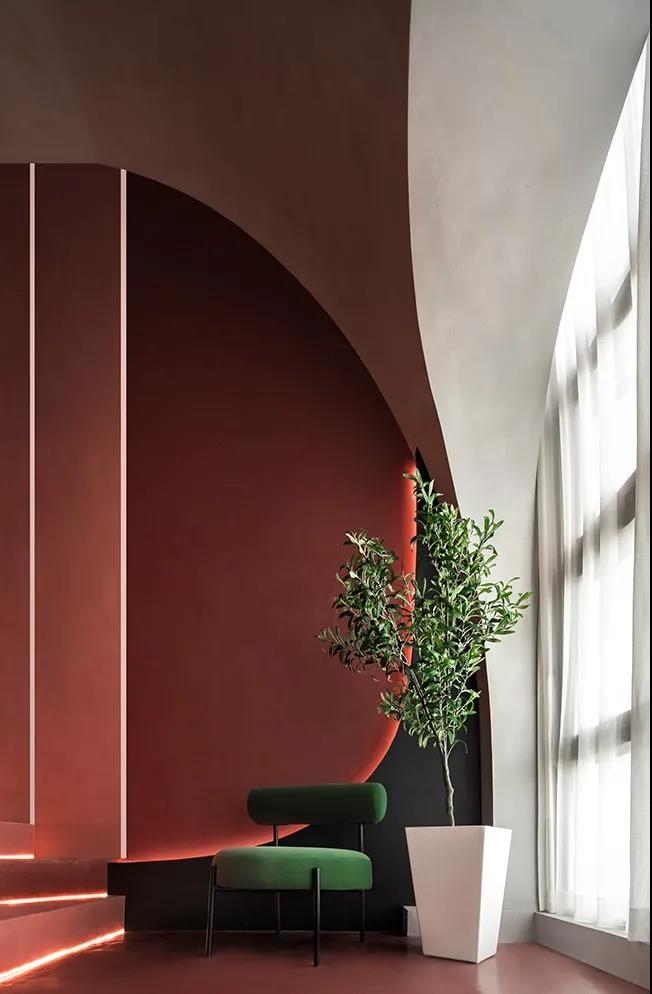 以粉色系WIPESTAIN艺术涂料作为主基调来衬托空间的温柔,卷曲的形体连接了不同的空间,空间和墙面本身的材质语言非常简单,尽可能用一种语言一句话概括了所有想表达的外在和内在。