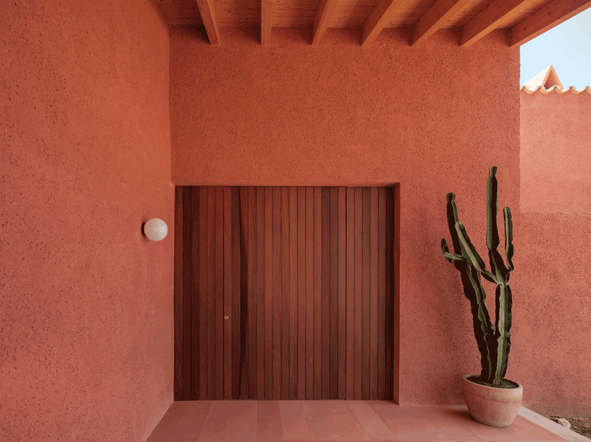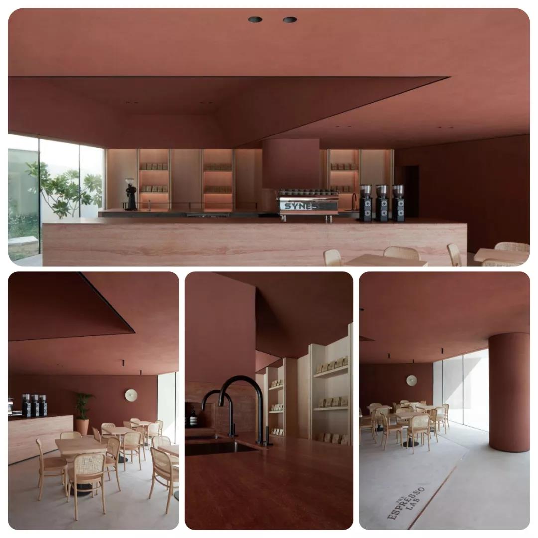 WIPESTAIN艺术涂料这种充满质感的材料显现出了建筑的简单几何形状,并在墙面之间创造了视觉和触觉上的连续性。”通过阴影和颗粒的材料延伸开来。