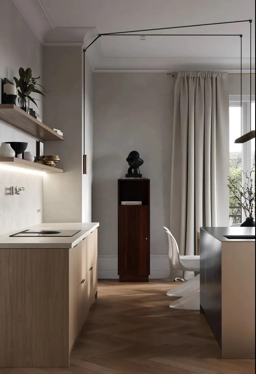生活空间也不再是只追求表面的华丽,而是开始探寻那些平凡生活中的不凡,空间尺度中的温度。以WIPESTAIN艺术涂料天然有机的材料和极简朴实的设计理念,让整个空间氛围显得温暖而有格调。素简淡雅的色彩散发出平静的气息,让人不由的彻底放松下来。